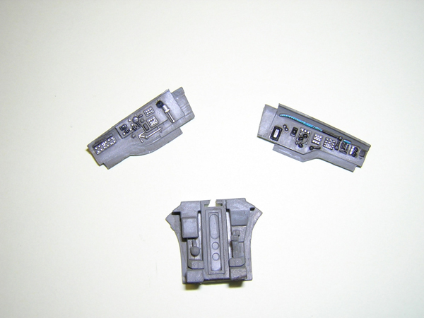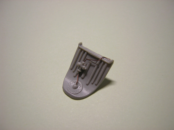 Il pozzetto carrelli è stato dettagliato con cablaggi vari e poi dipinto in metallo naturale. Data la delicatezza di questo pigmento, ho ombreggiato i particolari con i colori acrilici che non intaccano il colore sottostante. Ho poi lumeggiato con altre tonalità metalliche con la tecnica del pennello asciutto.