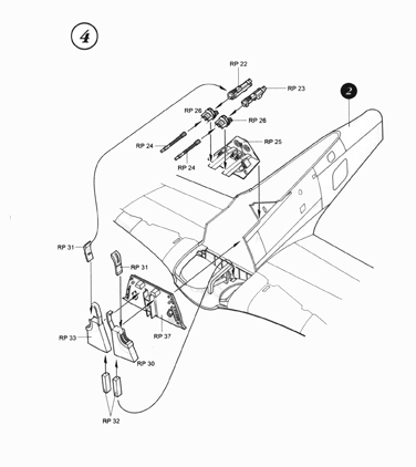 Una volta finito di verniciare l'abitacolo mi sono dedicato alla chiusura della fusoliera e al montaggio della sezione armi del velivolo. Questa parte del modello è fornita in resina dal kit dell'Aires 2019. Il set infatti fornisce la paratia parafiamma, |