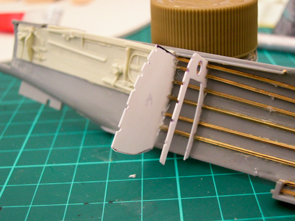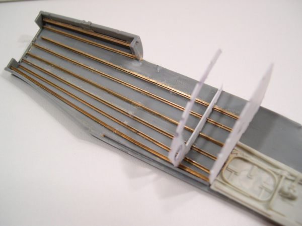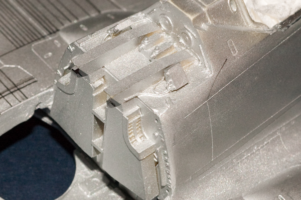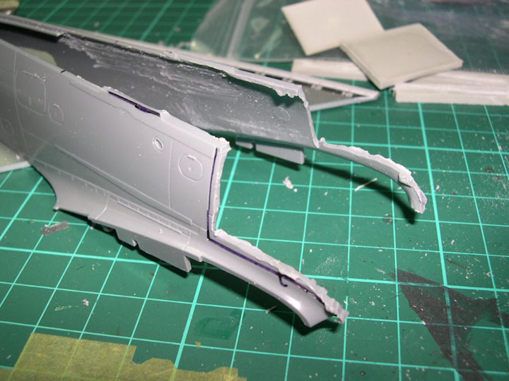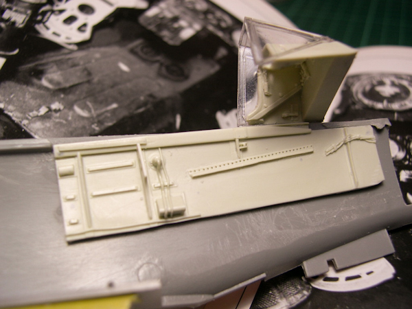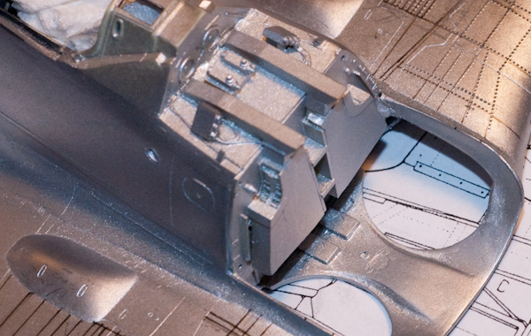 Come si può vedere dalle immagini qui sopra, il set di dettaglio della Eagle è veramente ben fatto. Naturalmente il lavoro che necessita il suo alloggiamento all'interno della fusoliera originale è notevole ma l'assemblaggio risulta preciso. I pezzi combaciano facilmente ed anche la quantità di stucco necessaria per raccordare le varie sezioni è minima. Successivamente, poichè il set di dettaglio della Verlinden fornisce, tra l'altro, anche il serbatoio ausiliario del carburante nonchè tutto l'apparato radio, che si trovano alloggiati dietro le spalle del pilota, ho iniziato la preparazione della fusoliera. A tale proposito per ricreare la centinatura interna ho utilizzato del plasticard e delle piccole |