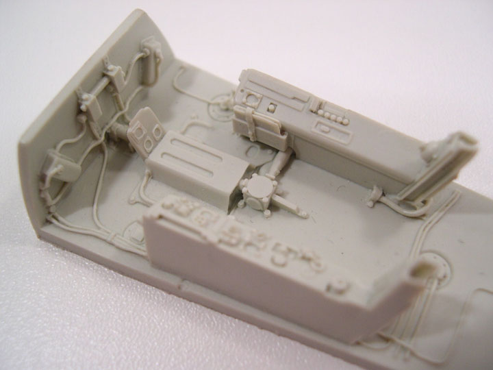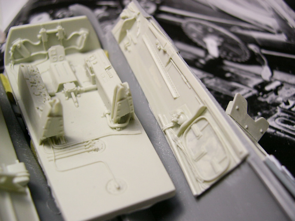 Dopo aver studiato a lungo le foto originali del Dora ho scelto di utilizzare il set della Eagle per dettagliare l'abitacolo del modello. Il kit è formato da numerose parti, comprese le paratie laterali, il sedile nonchè tuttla la porzione di fusoliera che si trova sotto il tettuccio. La definizione aggiunta al modello da questo splendido set in resina è davvero altissima. Naturalmente il suo montaggio all'interno della carlinga è devastante per le nostre già fragili coronarie, infatti bisogna dotarsi di una certa dose di coraggio e, armati di seghetto, distruggere un kit che già di per se è perfetto. |
