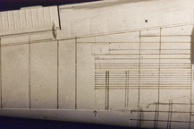 Quindi utilizzando un fattore di 1.5 ho ingrandito gli schemi fotocopiati dalla scala 1:48 a quella 1:32. Quindi, armato di infinita pazienza, vi assicuro, mi sono riportato sulla plastica lo schema di tutta la rivettatura del velivolo utilizzando un pennarello con una punta da 0.2 mm della Micron. Il lavoro è stato molto lungo e tedioso, in particolar modo per il fatto che la decisione di rivettare il modello è stata presa in ritardo, quando cioè fusolira ed ali erano ormai state assemblate. Questo naturalmente ha complicato notevolmente l'operazione. A questo punto utilizzando il rivettatore di Petr Douzek e il classico nastro Dymo come guida ho iniziato a incidere la superficie del velivolo. |